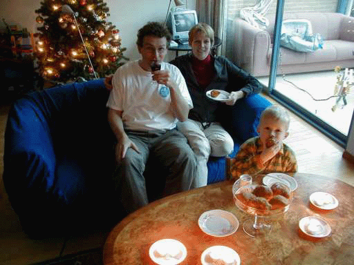 We're eating 'oliebollen', very fat fried, with sugar. MMM!